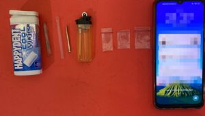 Dalam perkara ini barang bukti yang berhasil diamankan petugas, berupa kotak permen karet yang di dalamnya terdapat plastik klip berukuran 3,5×2,5 cm bekas sisa pakai, plastik klip berukuran 3×2 cm bekas sisa pakai, sedotan berbentuk skop, jarum, korek api gas dan Handphone merek Oppo A38 warna glowing gold.